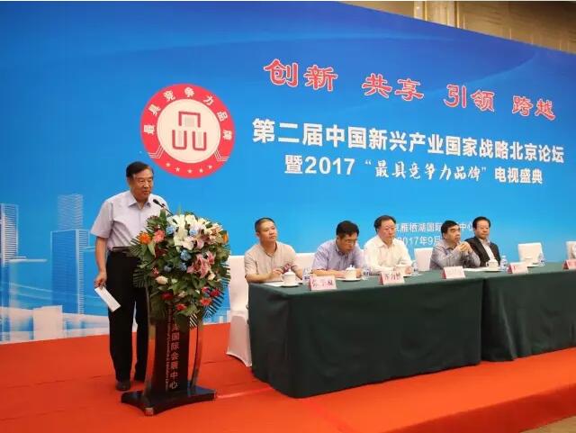 2017年9 月 17 日,第二届中国新兴产业国家战略北京论坛暨 2017 “最具竞争力品牌”电视盛典在北京雁栖湖(APEC)国际会展中心举行。来自国家有关部门、全国各行各业的领导、专家学者以及企业家代表、媒体记者 350 余人参加了本次会议。