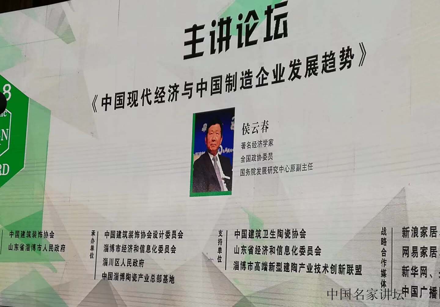 2018年9月5日,由淄博市人民政府主办、名家讲坛支持的“首届中国陶瓷原创设计与空间应用设计大赛新闻发布会”在淄博举办。讲坛邀请国务院发展研究中心原副主任侯云春,住建部原总经济师、中国建筑装饰协会会长李秉仁出席活动。中共淄博市常委、副市长杨洪涛,淄博市淄川区政府区长闫桂新等700人共聚盛会。