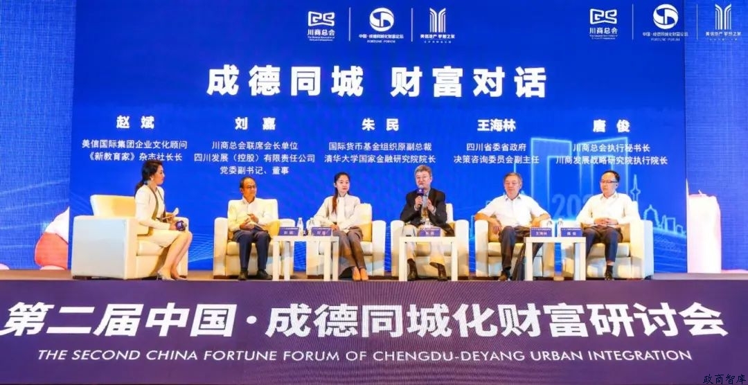 在聚光灯下,成德同城化热度持续升温。7月28日,“成德同城化财富研讨会”在成都举行。作为此次论坛的第二场活动,清华大学国家金融研究院院长、IMF原副总裁朱民,四川省委省政府决策咨询委员会副主任王海林现场做主题演讲,并与四川发展(控股)有限责任公司党委副书记、董事刘嘉,川商总会执行秘书长、川商发展战略研究院执行院长唐俊,美信国际集团企业文化顾问、《新教育家》杂志社长赵斌等多位政商大咖围绕“战略同城”“经济同城”“生活同城”“文化同城”圆桌论道,为如何更好推动成德同城率先突破、更好融入成渝双城国家战略把脉支招。